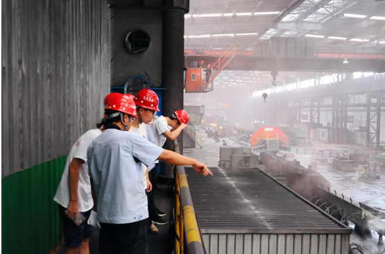 同學們在一邊參觀,一邊通過師傅現場講解,才真正了解到軋鋼的工藝流程并且知道了鋼板到底是怎么形成的。赤紅而超高溫的鋼板在生產線上快速運行,最后被切割成一段一段的,經冷水冷卻后,這些基本板材,有的進入軋機進行軋制后做成鋼材卷板。當天,在高溫又環(huán)境惡劣的再熱軋現場中,令人有種“蒸桑拿”的錯覺。雖然大家早已汗流浹背,但即便如此,同學們仍是保持精神,認真聆聽師傅的講解。當大學生們親眼目睹一道道工序的順利進行,直到鋼材一批批的成型,不由發(fā)出陣陣掌聲,既為工人師傅的精湛工藝和吃苦精神所感染,更深刻地體會到制造企業(yè)為社會主義生產力作出的貢獻。