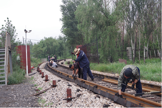 集團專用鐵路線是公司煤炭、原料等物質(zhì)運輸大動脈,它的暢通能有效保證了集團各生產(chǎn)車間的生產(chǎn)任務。由于工廠產(chǎn)量加大、載貨火車經(jīng)常超負荷運輸,再加上線路鋼軌曲徑小等原因,造成軌道銜接處出現(xiàn)低接頭現(xiàn)象以及部分鋼軌損壞,這些情況極易影響行車安全。為了保證鐵路運輸安全暢通,必須對存在安全隱患的75米鋼軌路段進行維修更換,為不影響列車通行,鐵路總局要求維修工作必須在3小時內(nèi)結束,在時間緊任務重情況下,工務組全體職工發(fā)揚不怕苦、不怕累的嘉晨精神,全身心投入到搶修工作中。