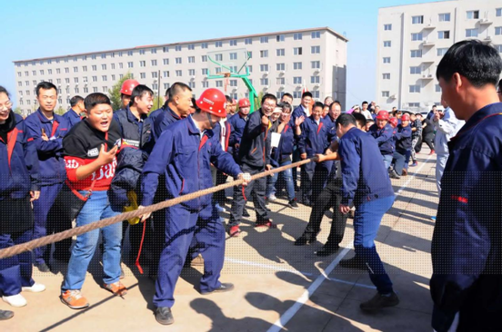 比賽場地設(shè)在辦公樓門前停車場。由各車間為單位,組成的12支代表隊參加了比賽,其中男隊8支女隊4支。比賽采用三局二勝制淘汰賽,每隊參賽人員 10人,按抽簽分組決定比賽順序。參賽隊員們個個摩拳擦掌、士氣高昂,隨著裁判員一聲哨響,比賽正式開始。隊與隊之間是一場力量和技術(shù)的較量,上場的兩支參賽隊伍緊握拔河繩,心往一處想,勁往一處使,拼勁全力,展開了實力拉鋸戰(zhàn)。賽場下,啦啦隊員們?yōu)樽约褐С值年犖榧佑凸膭牛曇焕烁哌^一浪。隊員們在賽場上的精彩表現(xiàn)搏得了現(xiàn)場觀眾的陣陣歡呼,號子聲、吶喊聲,此起彼伏,高潮迭起,氣氛熱烈。
