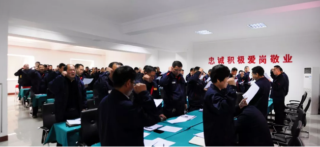 會(huì)議最后由左總領(lǐng)誓,全體人員莊嚴(yán)宣誓——“我們是光榮的營(yíng)鋼人!安全生產(chǎn)是我們神圣的職責(zé)!為了自己的安全;為了家人的幸福;為了企業(yè)的發(fā)展。我宣誓:從我做起;遵章守紀(jì)!忠誠(chéng)企業(yè);履行職責(zé)!查處隱患;拒絕違章!規(guī)范操作;警鐘長(zhǎng)鳴!珍愛(ài)生命;確保安全!!