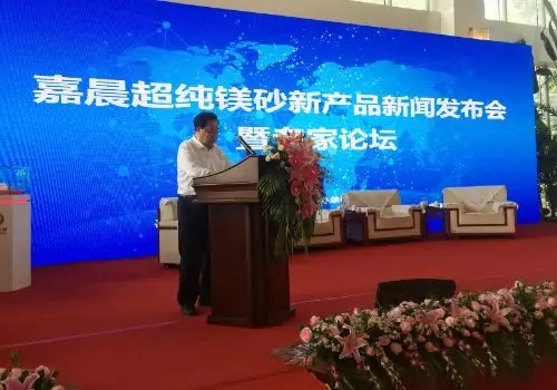 5月17日下午,由嘉晨集團(tuán)、營(yíng)口市人民政府新聞辦公室、營(yíng)口市工業(yè)和信息化局聯(lián)合舉辦的嘉晨集團(tuán)超純鎂砂新產(chǎn)品新聞發(fā)布會(huì)暨專家論壇,在嘉晨集團(tuán)總部大樓舉行。嘉晨集團(tuán)董事長(zhǎng)孫壽寬、總裁孫朝英、總工程師畢德利,省發(fā)改委、省工信廳、省科技廳相關(guān)領(lǐng)導(dǎo),營(yíng)口市副市長(zhǎng)翁永財(cái),及市有關(guān)部門主要領(lǐng)導(dǎo);大石橋市政府、老邊區(qū)政府主要領(lǐng)導(dǎo)及相關(guān)部門;鎂制品行業(yè)協(xié)會(huì)領(lǐng)導(dǎo)、國(guó)內(nèi)外耐火材料行業(yè)專家,以及70多家耐火材料行業(yè)企業(yè)家共計(jì)140余人出席。20多家媒體記者參加了發(fā)布會(huì)。