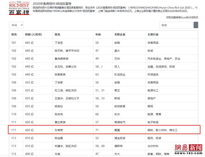 今年是胡潤研究院自1999年以來連續(xù)第22次發(fā)布“胡潤百富榜”。按照2020胡潤百富榜企業(yè)總部統(tǒng)計,嘉晨集團(tuán)董事長孫壽寬再次問鼎遼寧首富,這已經(jīng)是他連續(xù)多年榮登遼寧首富寶座。