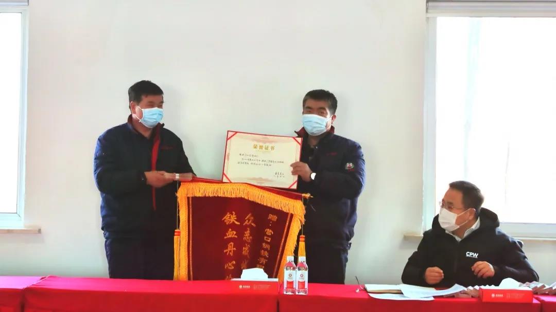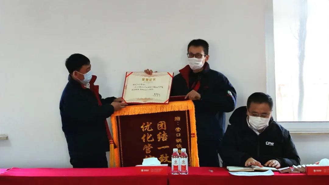 張總為煉鐵廠頒發(fā)錦旗和榮譽(yù)證書
